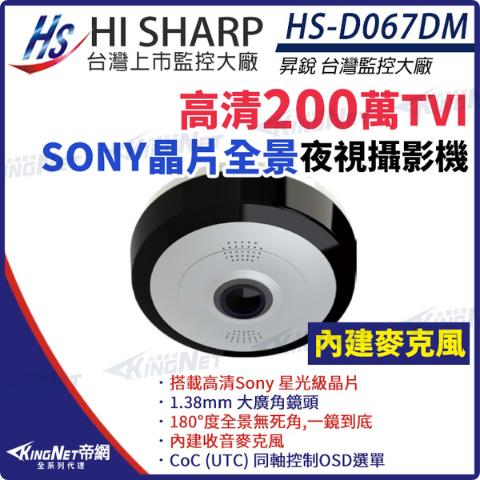 【KingNet】昇銳 HS-D067DM 200萬 1080P 超廣角 全景攝影機 Sony星光級晶片 內建麥克風 監視器sony手機收購